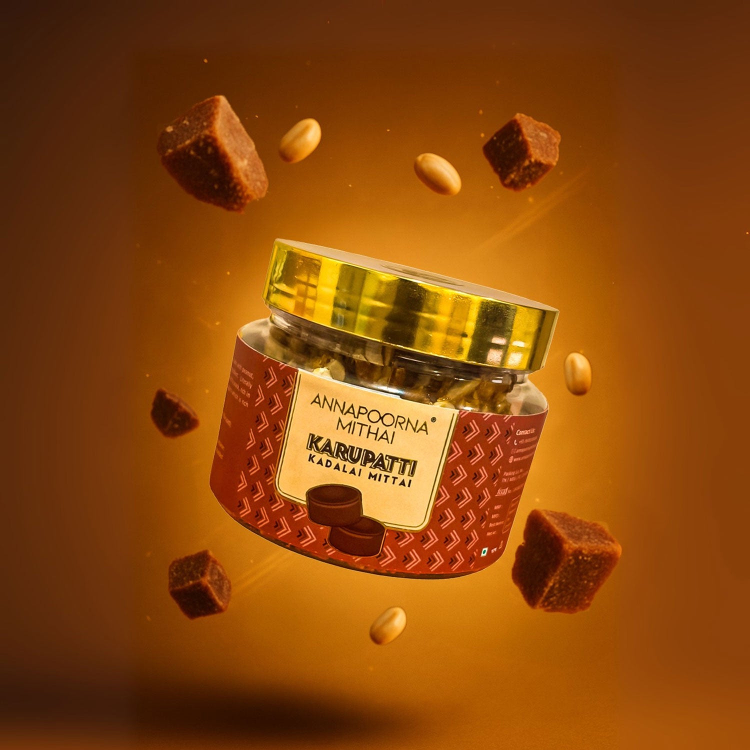 Original Kovilpatti Karupatti Kadalai Mittai (Groundnut Chikki Candy). Made with pure vembar palm jaggery and 1st grade peanuts. Chikki is a traditional Indian sweet (brittle) generally made from peanuts and jaggery. There are several different varieties of chikki in addition to the most common groundnut (peanut) chikki. One of the tastiest candy from Kovilpatti.